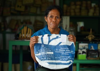 Weaving is a normal activity for the Fumor group because almost all women do so but this group also sews, they reuse cloths, fabric, bags that are not used anymore that can be used again and this is a recycling activity to reduce waste. Where the group lives (Makadade) is very difficult to find materials, so the group takes advantage of the market day in Beloi (other village far away from their place of residence) to come to sell goods and also to collect materials such as used clothing, bags and sometimes to buy other materials (e.g. tais, fabric) that are needed for sewing.