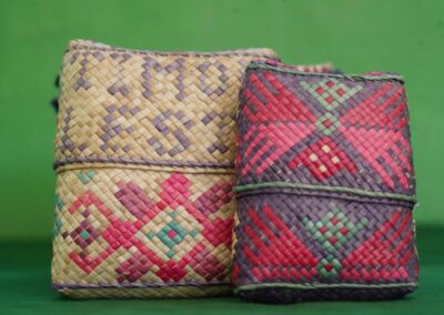 While the group possesses remarkable skills in producing both tais and woven products, they have become particularly adept at crafting exquisite creations that beautifully blend the two techniques. This mastery of combining woven materials with tais fabric showcases their ingenuity and their ability to adapt traditional crafts to meet contemporary demands.